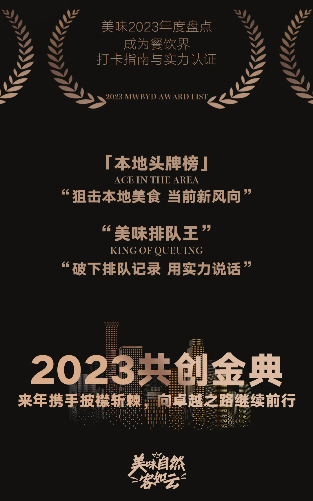 品牌可借助榜单作品牌背书,继续优化品牌;本地食客、外地游客皆可以此为餐厅指南,跑遍各地打卡,寻找时下流行美食。 轻舟已过万重山,度过艰难的三年后,将开启重启键,掀开生活新画卷,有的店迎难而上逆转局势,有的坚持不懈杀出重围,无论怎样都是在为自己年终成绩单努力。 到底,今年成功角逐入局的王牌会是谁?